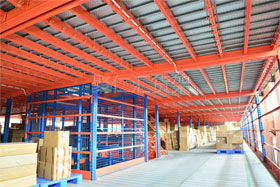 合抱閣樓簡介 合抱閣樓貨架是利用合抱立柱和橫梁作為主體支撐加上樓面板,樓面板通常選用木板或者冷軋鋼扣板等;設(shè)置有樓梯和護(hù)欄,搭配升降平臺使用效率倍增。 合抱閣樓特點